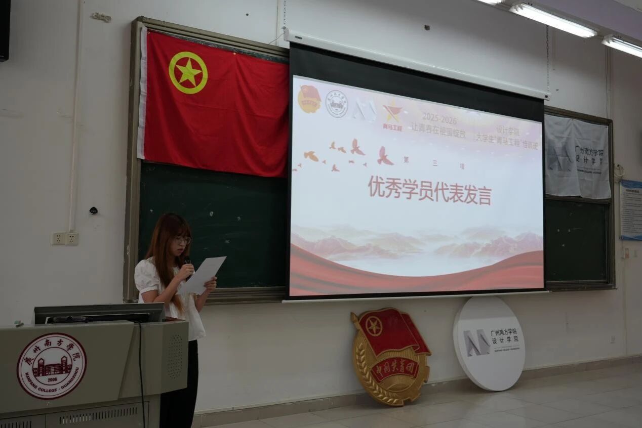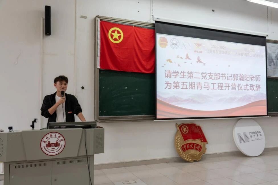 为积极响应《灯塔工程——广东青年大学生思想引领行动方案》,进一步加强对青年大学生的思想政治引领,不断完善青年政治骨干培养体系,着力为党培养和输送一批信仰坚定、素质过硬的青年政治骨干。10月29日,设计学院第四期“青马工程”结营仪式暨第五期“青马工程”开营仪式于4号教学楼举行,设计学院学生第二党支部书记郭瀚阳老师、团委书记廖湘老师出席本次活动。